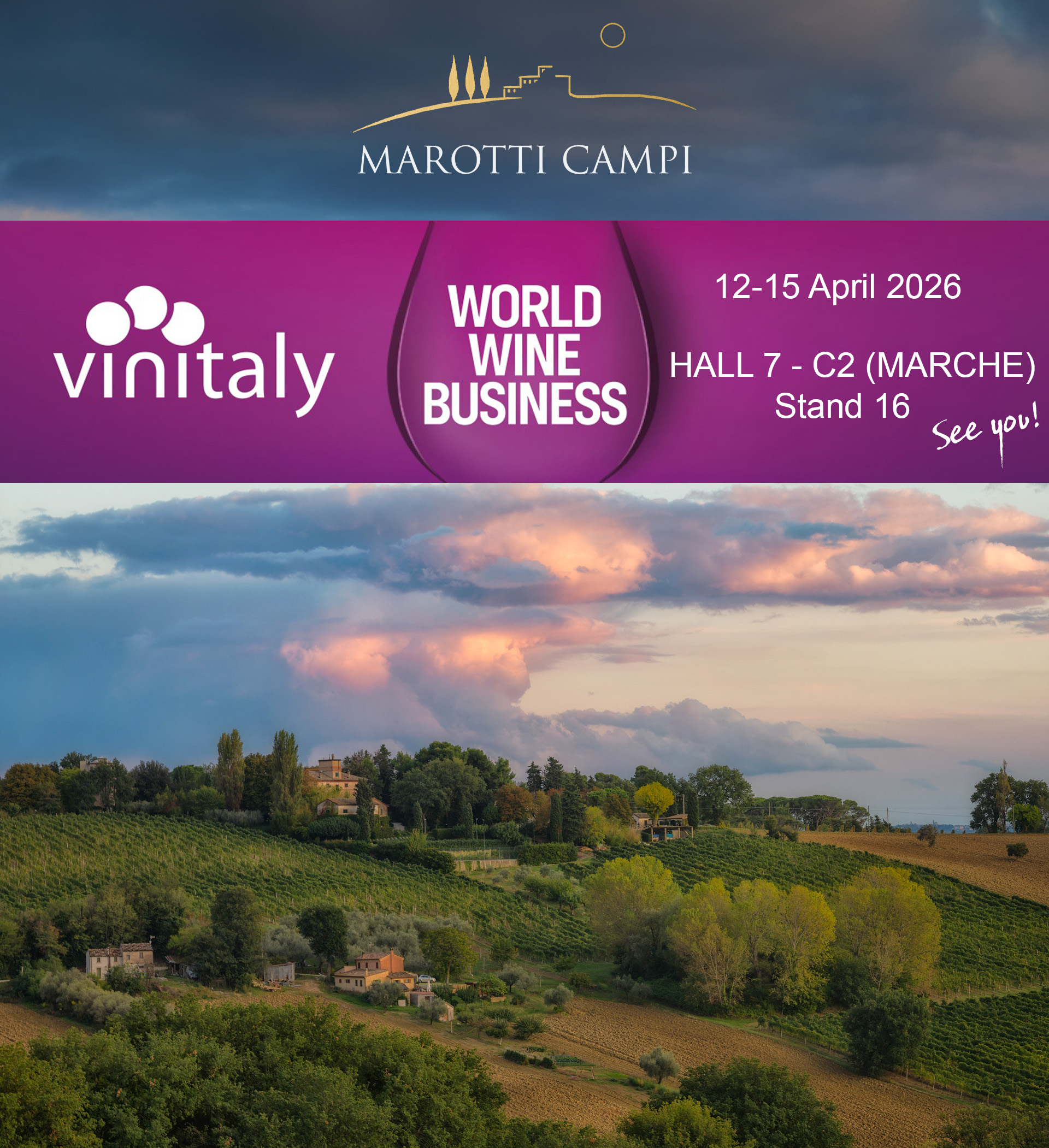 View Larger Image Vinitaly 2026 – 12 16 Aprile Verona, PAD 7 – C2 (Marche) – Stand 16 We’re back at Vinitaly again this year! Join us in Verona from April 12-15. Come visit us at Hall 7 – C2 (Marche), Stand 16 lorenzo2026-04-10T09:46:15+02:00April 10th, 2026| Share This Story, Choose Your Platform! FacebookXRedditLinkedInTumblrPinterestVkEmail